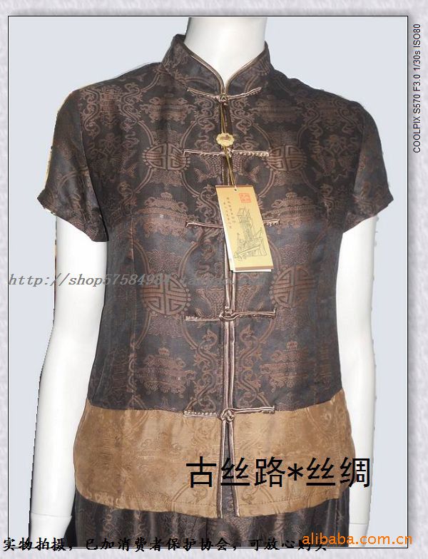 真絲香云紗莨紗上衣/女式中式唐裝上衣/鑲下擺襯衫