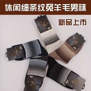 廠家批發 2013秋冬新品男襪 休閑商務橫條兔羊毛中筒襪 長邦襪子3.15