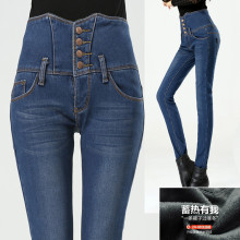 2014冬季新款 4排扣超高腰加絨加厚牛仔褲 小腳褲水貂高腰牛仔¥58.00售出 574