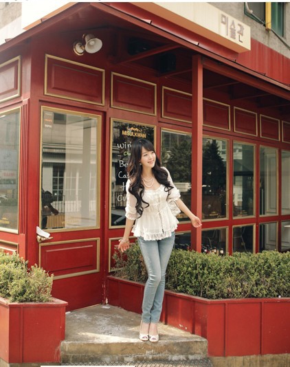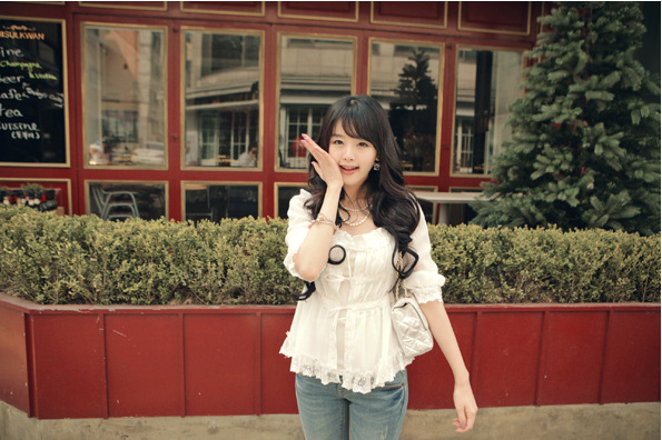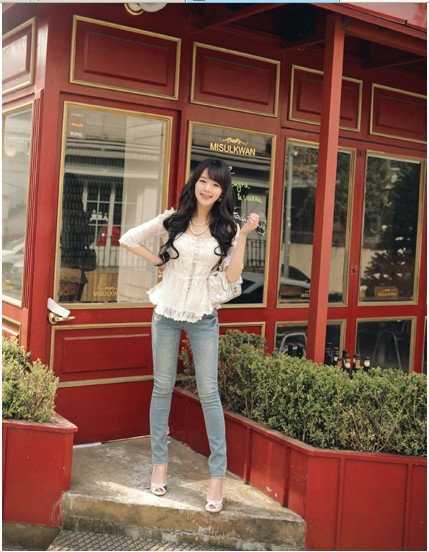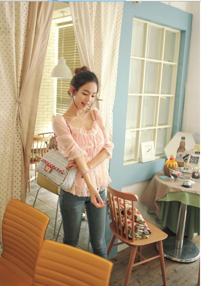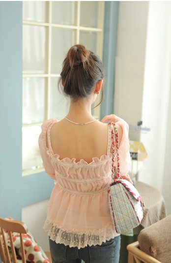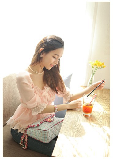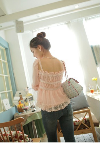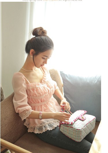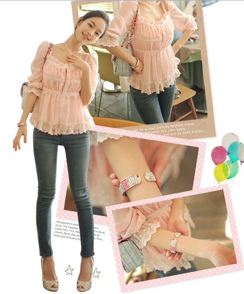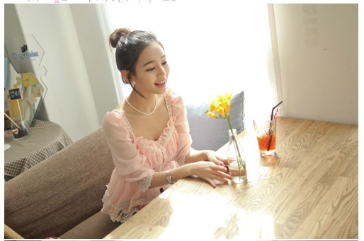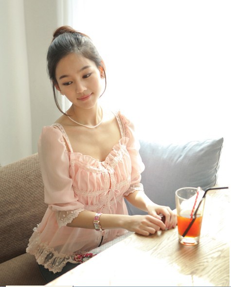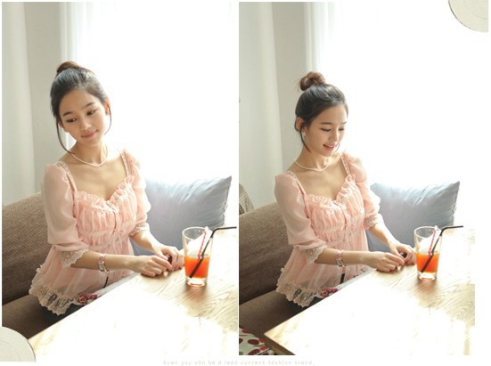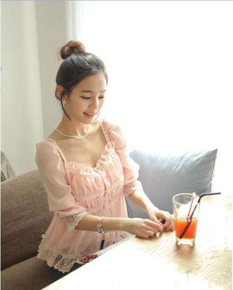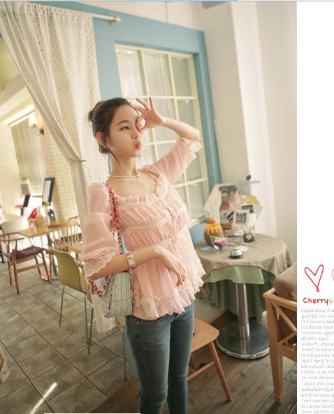 當夏人氣爆款!時尚蕾絲花邊 韓版雪紡衫 甜美教主超愛