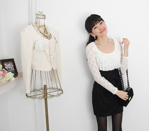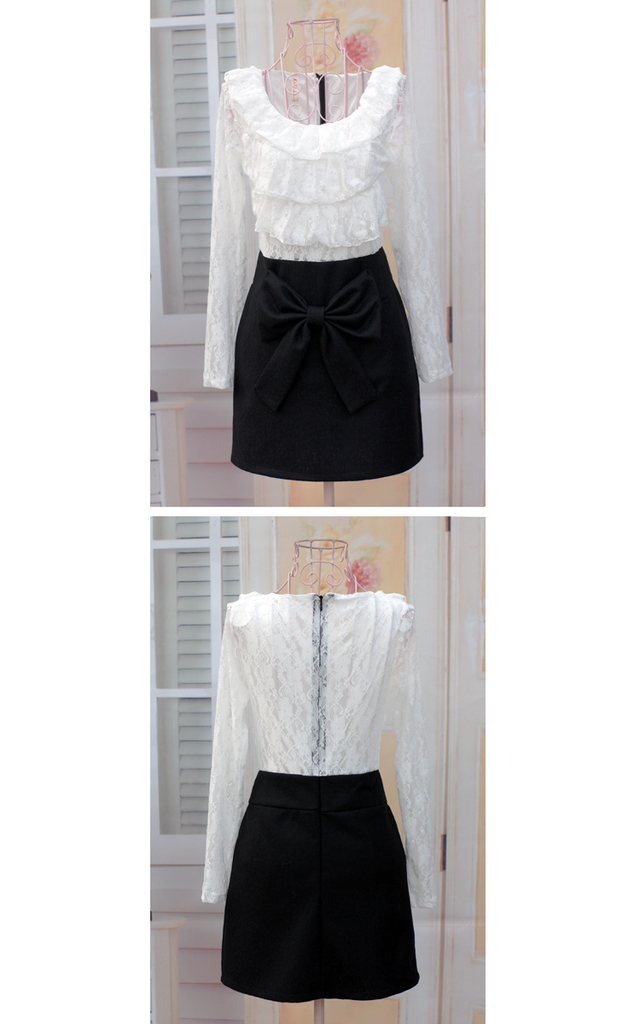 又是一款嫵媚小女人的連衣裙。誘人的蕾絲加上嫵媚的小包裙更是能顯示出女婀娜多姿的曲線。小包裙上大大的蝴蝶結更適宜的表露出可愛小女人的姿態。呢料包裙哦。 S M兩個碼數。親們穿上她,搖身化作性感嫵媚可愛的小魔女吧