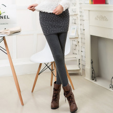 韓版秋冬女燙鉆假兩件高腰包臀顯瘦修身百搭保曖加絨加厚打底褲裙