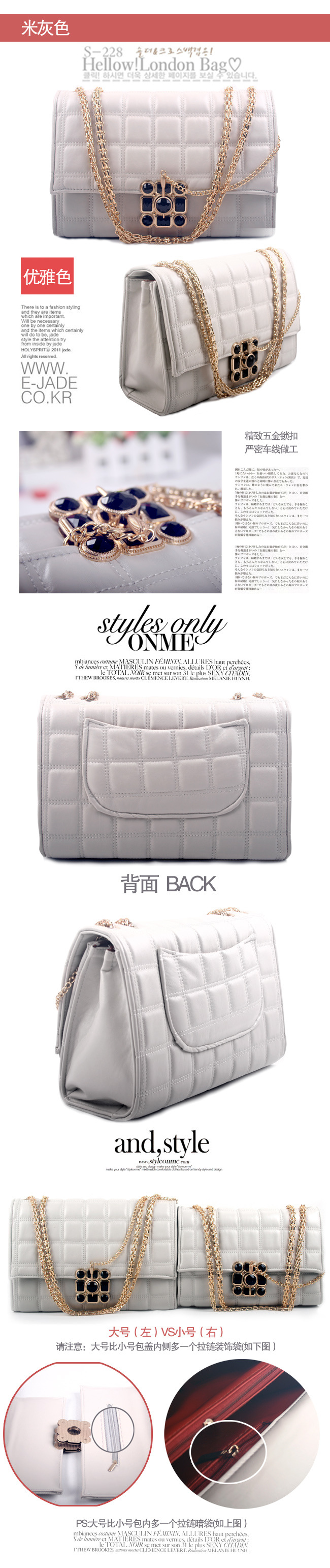 流行稍縱即逝,風格永存--依然是我們背后的指導力量。菱格紋寶石發簪插鎖的組合,讓經典的魅力百看不厭。自由、任意和輕松的設計,既奔放又端莊,既有法式的浪漫、詼諧,又有德式的嚴謹、精致。柔軟的觸感,流暢的線條 ,極度精致適用于任何場合,任何年齡層的時尚女性都愛不釋手。簡約大方的橫款方形,精致的復古方形寶石發簪金屬搭扣,盡顯出獨特、典雅氣質!無論是出席宴會還是OFFICE L-ADY,骨子里濃濃的高貴氣質都將讓你成為人群中的QUEEM!