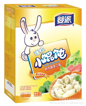 【產品配料】:精方法一:將1袋小餛飩倒入消毒后的餐具中,量取300-500毫升沸水倒入餐具加,蓋上蓋燜 約5-6分鐘,使其充分吸水軟化后成為盛出,冷卻到適宜溫度即可食用