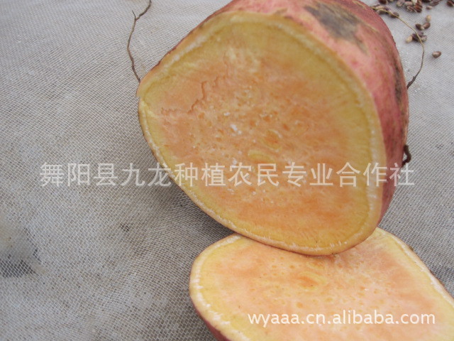 龍薯9號:蔓長0.8-1m,分支5-8條,脈基微紅,莖葉全綠,葉片心臟形,一般結薯3-5塊,薯塊紡錘形,紅皮橘紅肉,整齊光滑,大塊率高,口味甜,適應性強,是一個鮮食、加工、烘烤的上等品種,春薯畝產4000公斤左右,夏薯3000公斤。