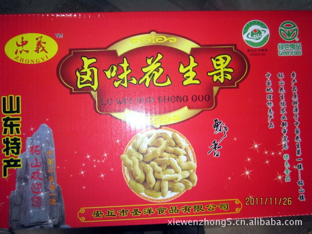 忠義牌鹵味花生果的主要特點是:香!酥!脆!適合不同年齡段的人食用。我公司主要從事花生果的加工,公司產品主要以山東特有的魯花系列花生果為生產原料. 我廠生產的產品口味純正、香氣濃郁,是生活休閑、出差旅游、親友饋贈的必備佳品! 我公司熱烈歡迎包裝商、代理商來我廠考察和洽談合作!聯系方式:解先生