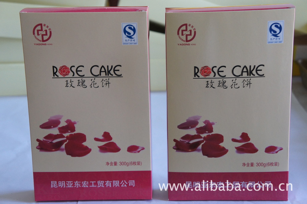 制餅:鮮花餅的大致做法是——用含苞欲放或者微微開放的玫瑰花的花瓣制作成玫瑰花餡,加之以面粉、香油、白糖、蜂蜜等配料焙烤而制成,新鮮出爐的鮮花餅酥軟爽口、花香濃郁、沁人心脾。