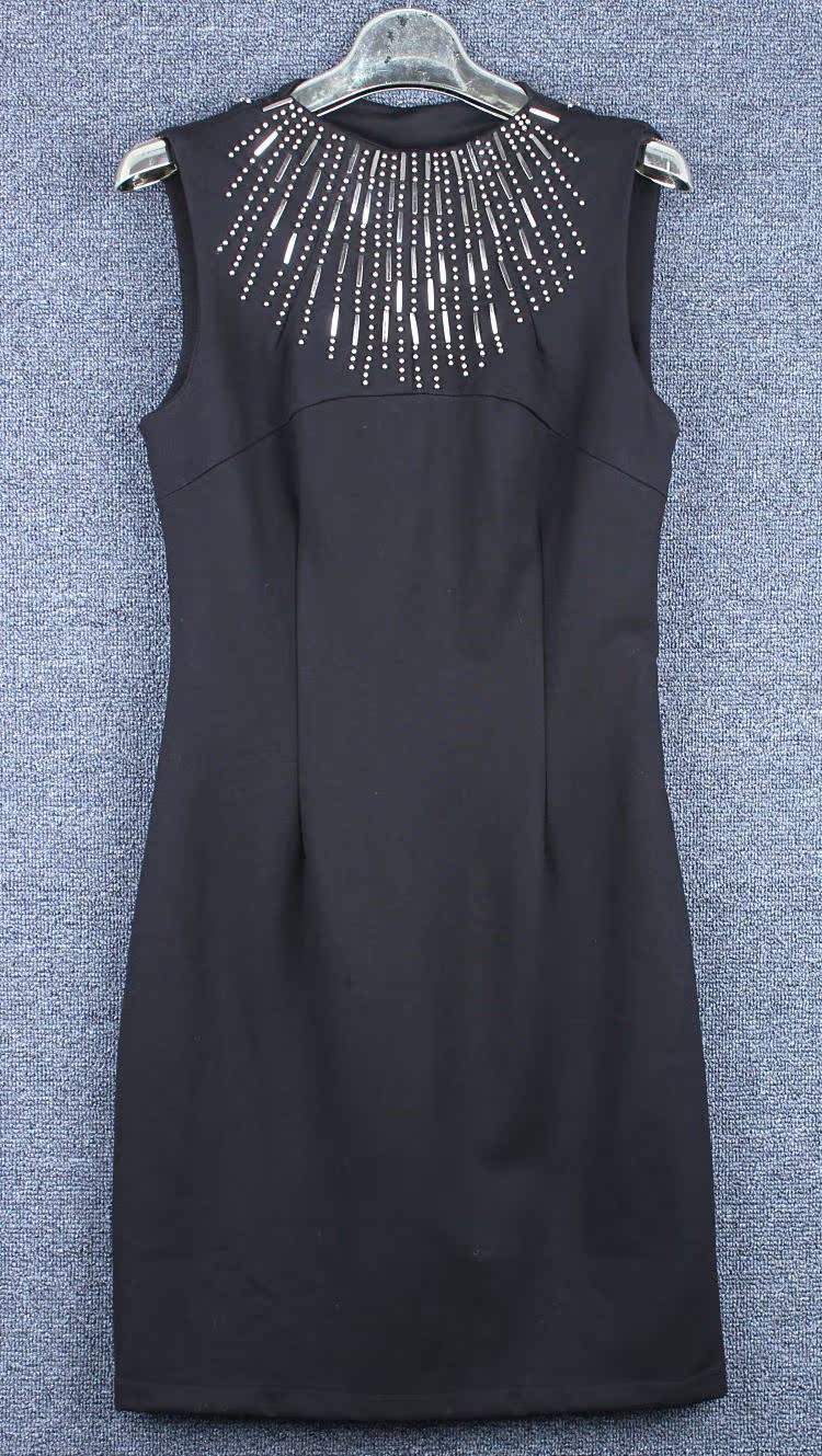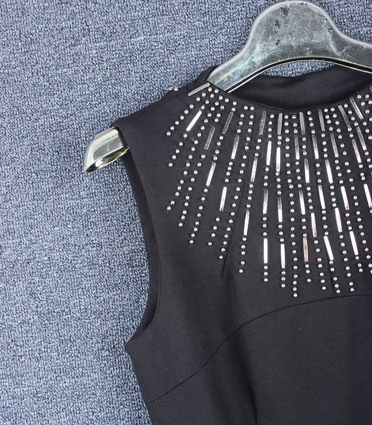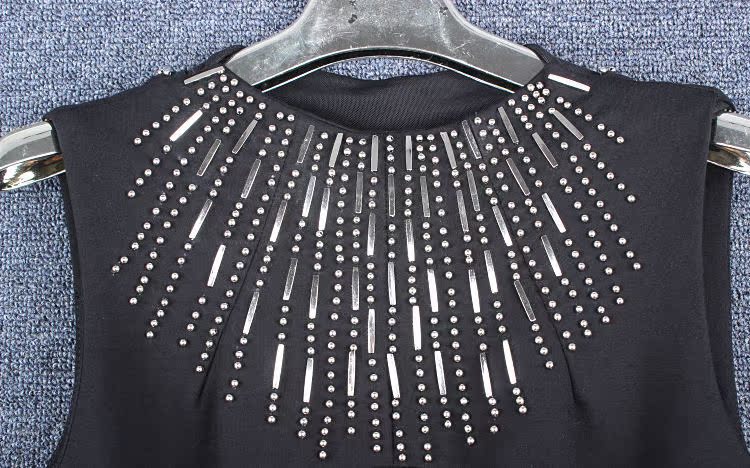【商品款式】2014秋冬新款女裝歐美時尚重工釘珠修身顯瘦包臀背心打底連衣裙子