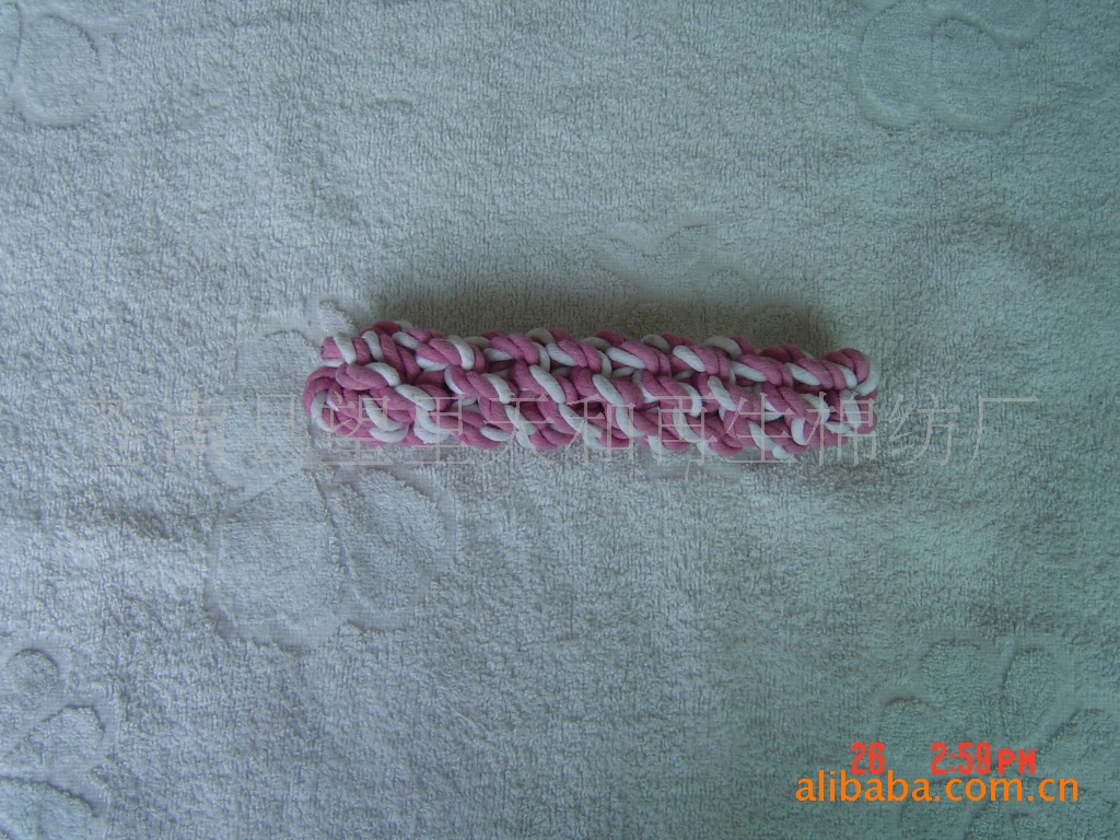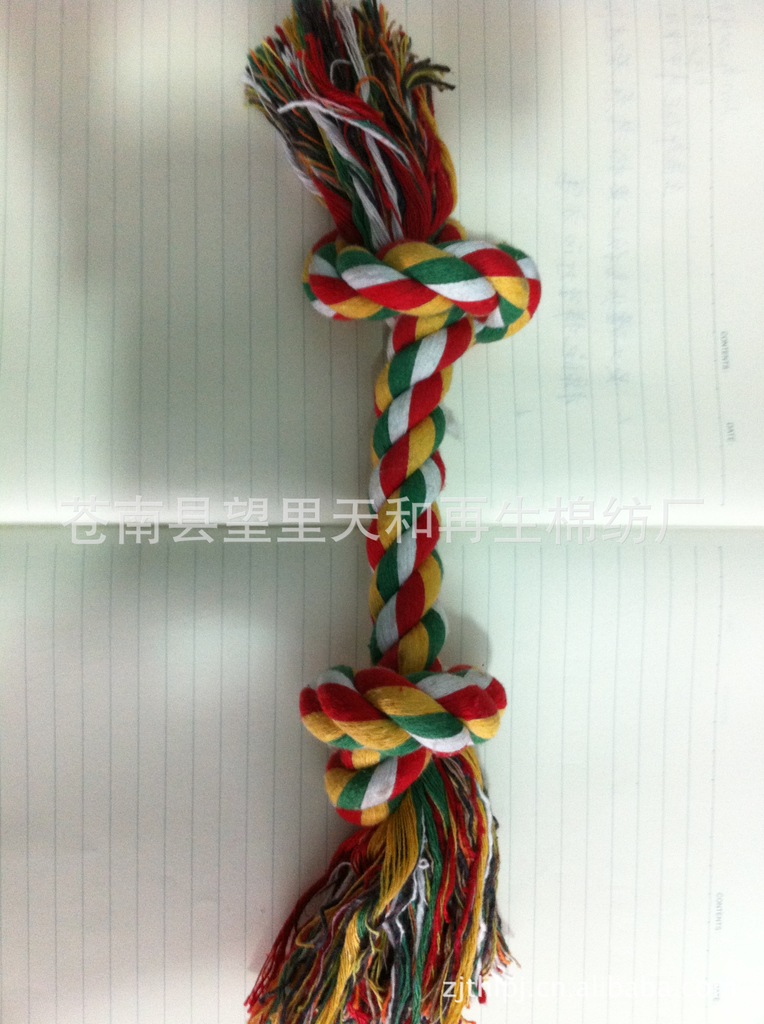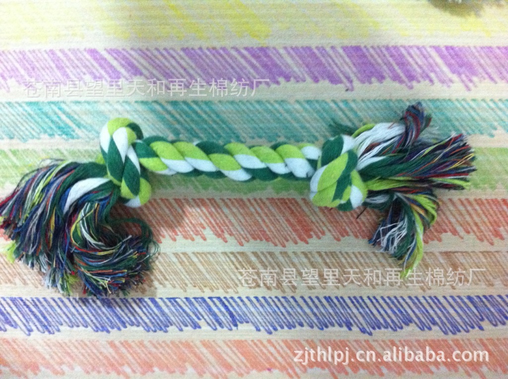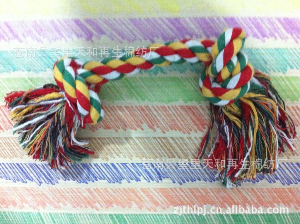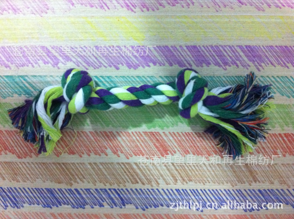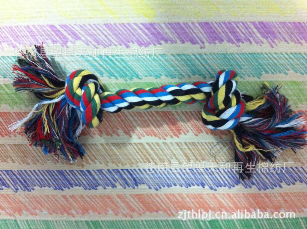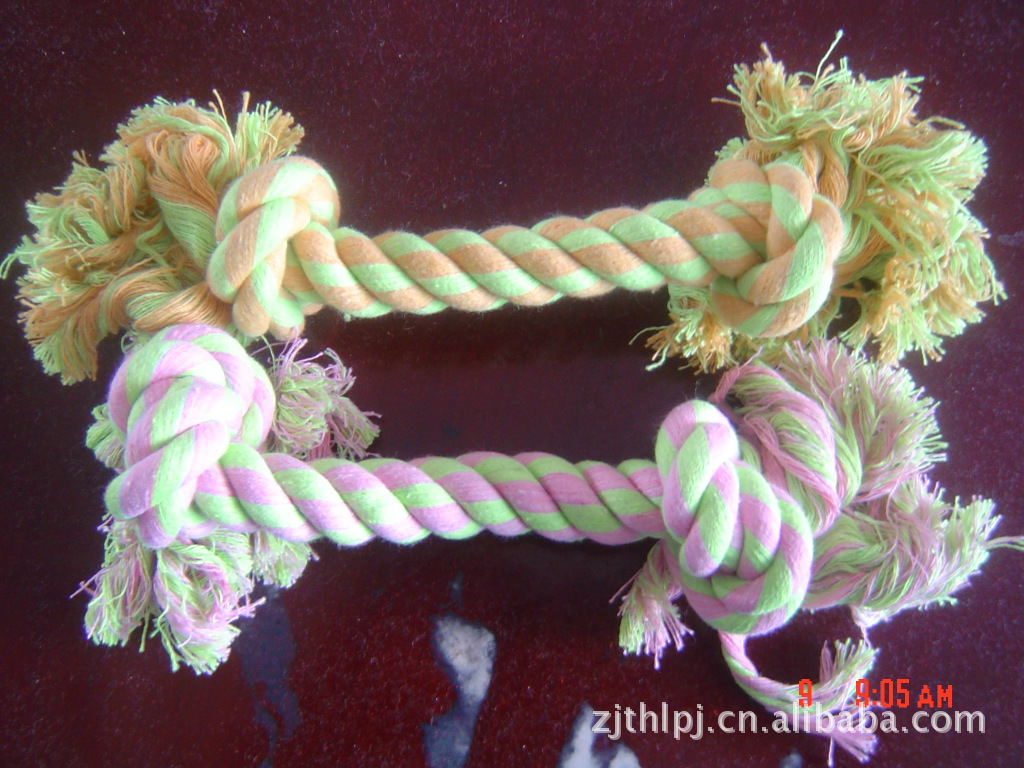彩色棉繩制成,不易被寵物咬開,可以避免寵物撕咬電線、家具等,也可以讓愛犬和主人來回拉動玩,以增進主人和狗狗的感情。也可以讓狗狗自己咬著玩,是愛犬的潔牙,磨牙,娛樂的哦.