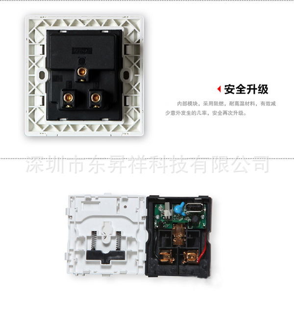 4,插座銅片使用優質錫磷青銅,強度高,彈性好,不變形,導電性能高。