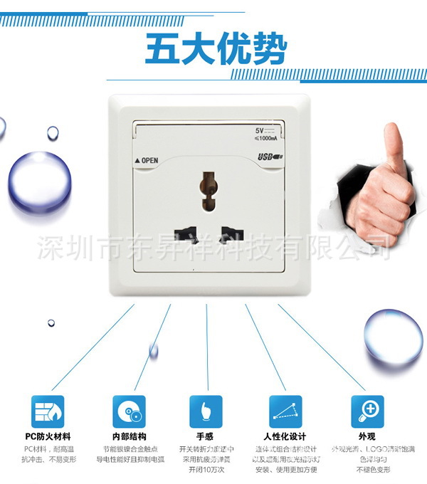 設計這款產品的目的,是更加方便現代人的電器化生活?,F在,大量的小型用電設備,例如手機、相機和移動娛樂產品,都是采用USB接口充電,需外接轉換器或實用特殊的充電設備,而USB充電墻壁插座的應用就可省去這些轉換設備,非常符合現代生活需要,讓充電更加輕松方便,可以省去不少麻煩。