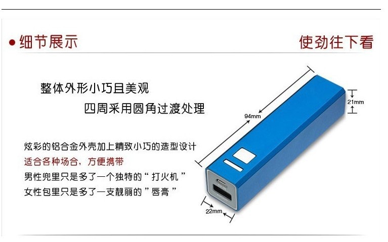 3、輕巧便攜:在外出辦事或旅游時,可以隨手放 口袋、錢包、公文包或行李箱內即可在手機沒有電時應急補充電力。