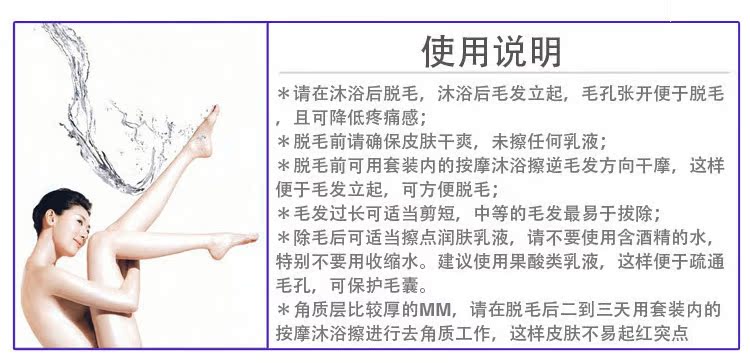 2.一般20天脫毛一次.在洗澡以后,毛孔張開時,用質量好的脫毛器,脫毛以后還會注意用一些清柔的乳液滋潤皮膚!
