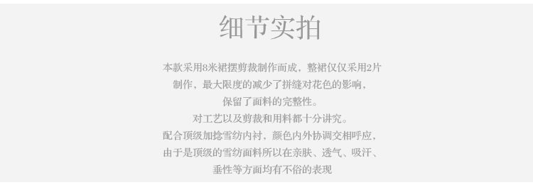 因實物拍攝,色差不可避免,光線亮一些,暗一些,拍出的裙子顏色以及明暗度都會有差別。一般室內看就會暗些,室外陽光下就亮