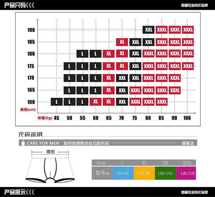 為了方便銷售,所標男士內褲指的是一條的價格,包裝為盒裝,一盒2條裝,起訂量指的是同一款不同顏色起批量,不