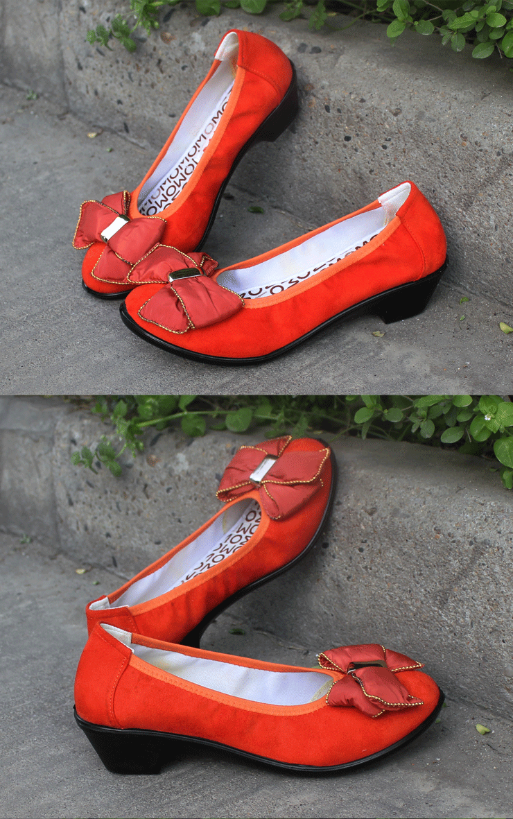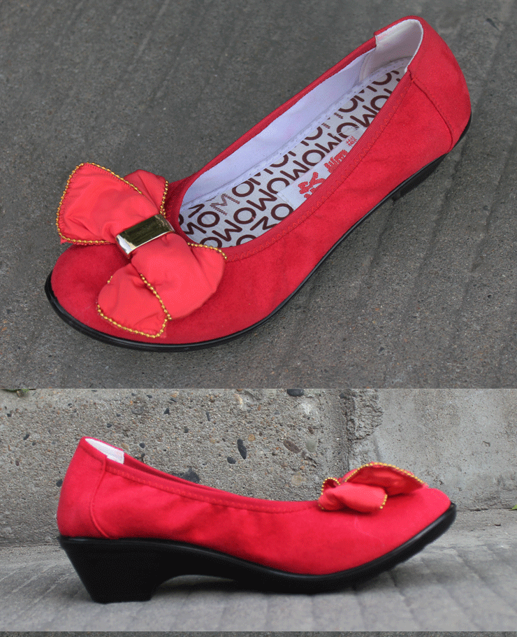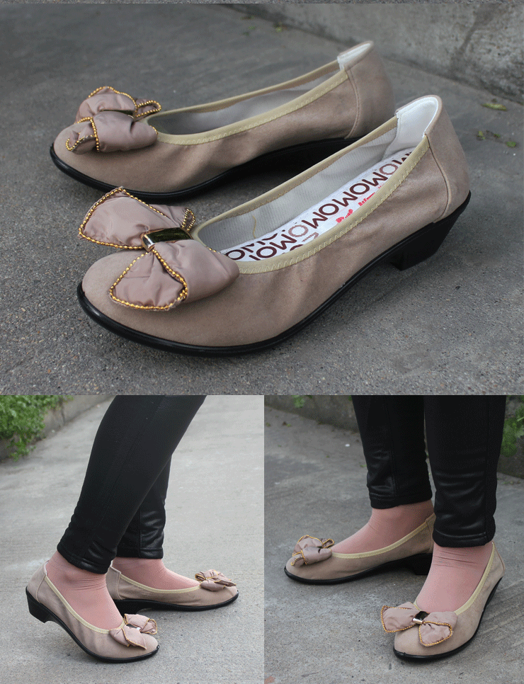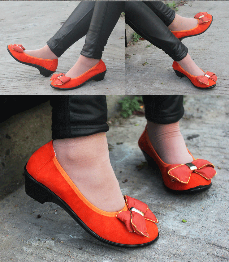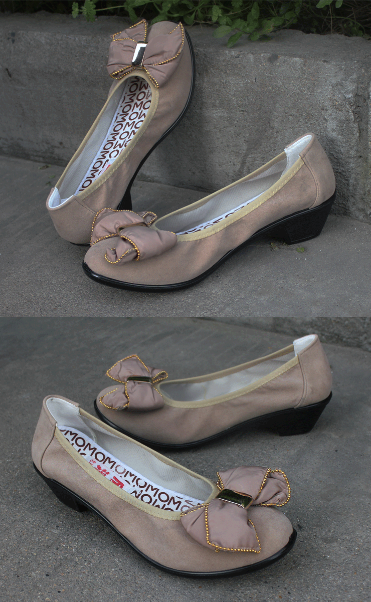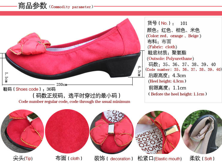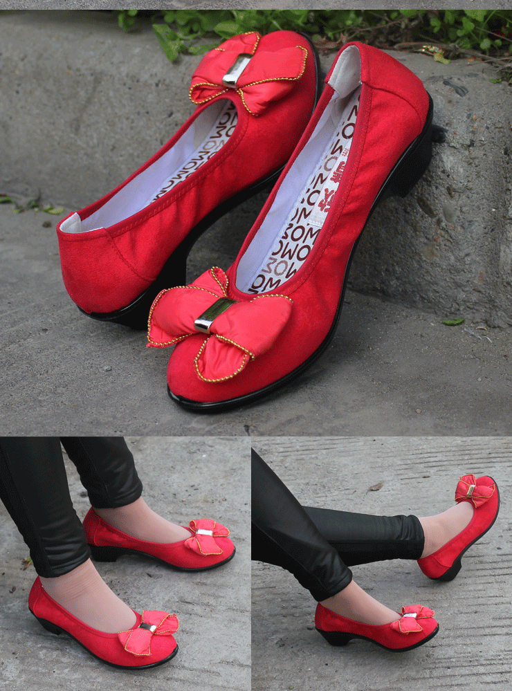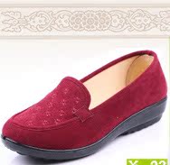 春夏季女式老北京布鞋 休閑女單鞋媽媽鞋蝴蝶結純色松緊口坡跟鞋
