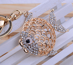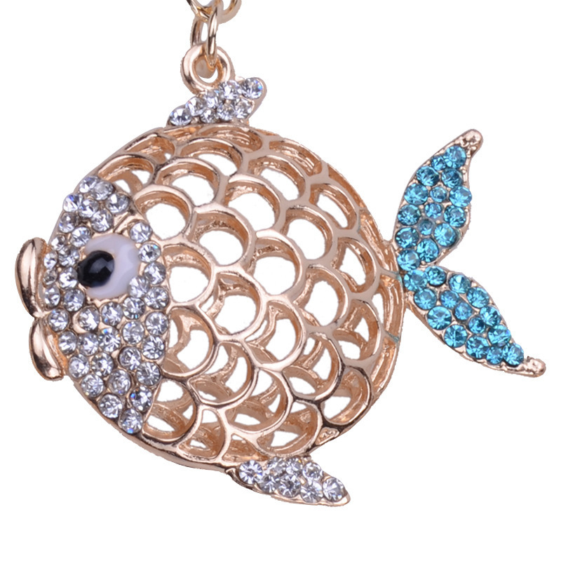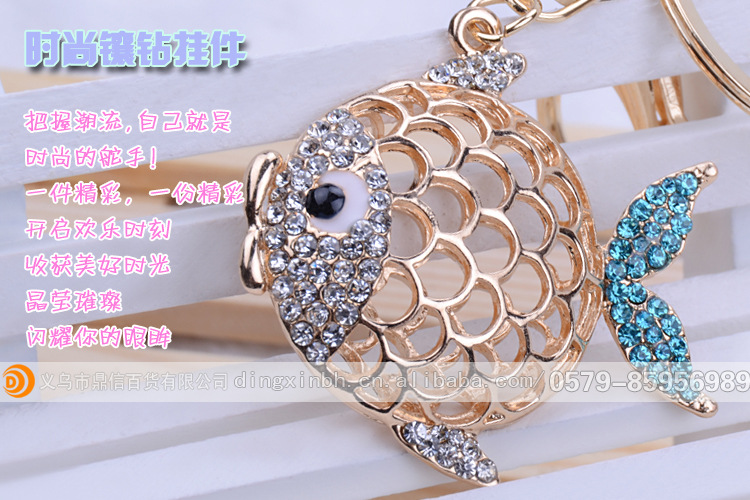 新款韓版金魚金屬鑲鉆汽車創意鑰匙扣批發 鑰匙鏈 包包扣 禮品