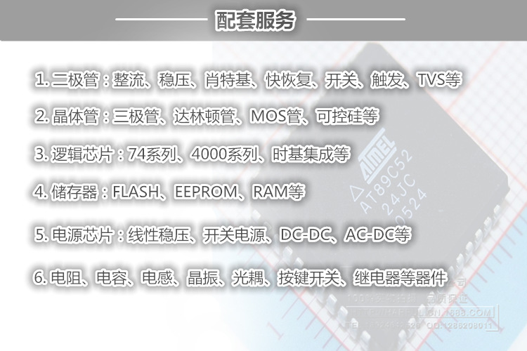 2.由于電子元件的更新速度奇快,品牌廠家也多,所以網店的的商品圖片僅供參考,一般情況下是隨機發貨不按指定品牌發貨;如有特別要求的朋友(尾帶/品牌)請在下單前聯系店主.