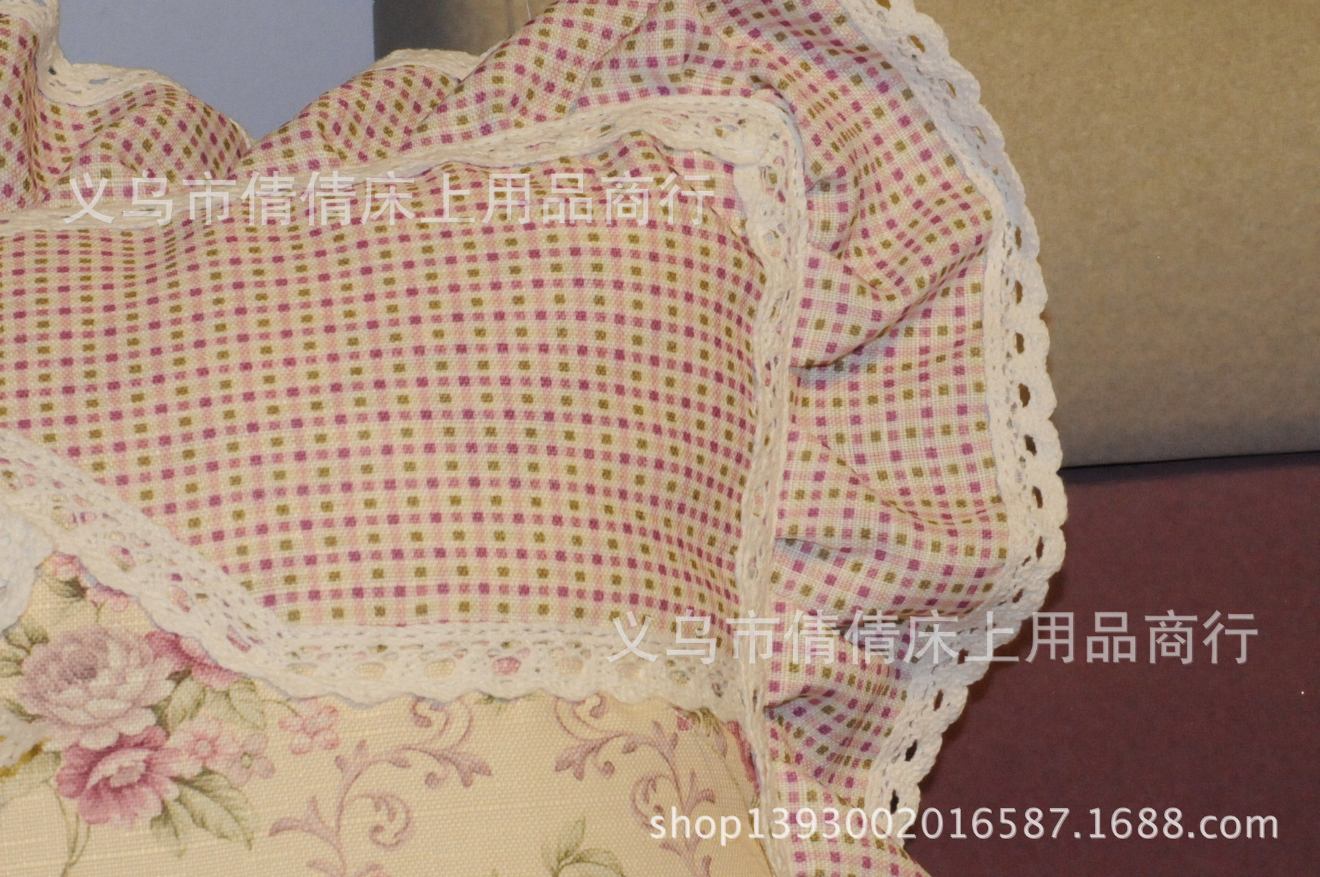 倩倩布藝 棉花邊田園全棉抱枕靠墊汽車墊