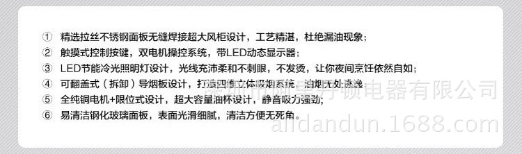 1.外觀設計,抽油煙機與煤氣灶頭實行零距離靠墻安裝,人性化設計。無碰頭滴油之慮,無壓抑之感;