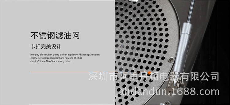4、配置可調鋼化玻璃前條,防止油煙外溢,突顯細節功力;