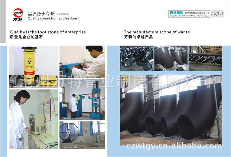 滄州萬特管業制造有限公司,是生產碳鋼管件、鋼管、不銹鋼管件,合金鋼管件的專業企業。