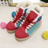 冬季新品女生糖果色雪地靴短筒翻毛皮皮靴平底靴皮毛一體保暖女鞋