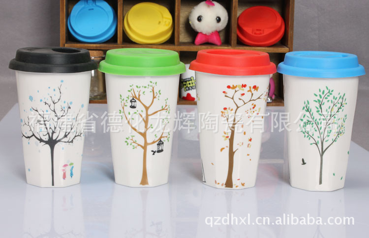 陶瓷雙層保溫水杯,杯子蓋子是食用硅膠材質,很軟的!