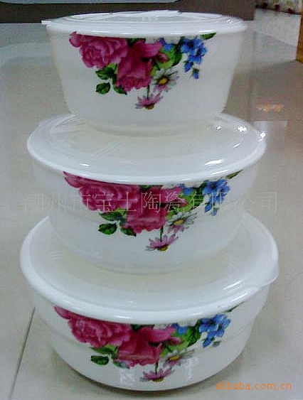 多功能陶瓷保鮮碗,適用于微波爐.冰箱及餐廳野外.使用功能之多.方便好用.花色精美多樣.分大中小三款,有意者請聯系,您的滿意是我們永遠的追求!