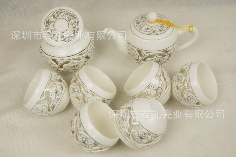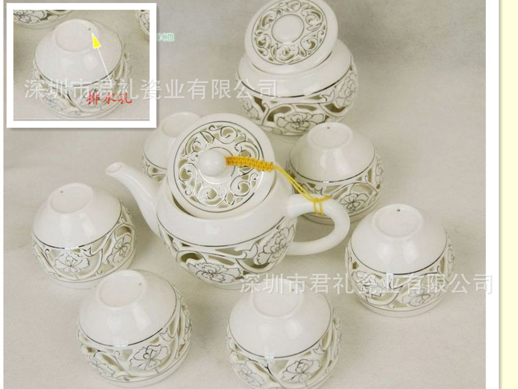 君禮 廠家直供 功夫茶茶具 手工描繪鏤空茶具套裝 陶瓷茶具