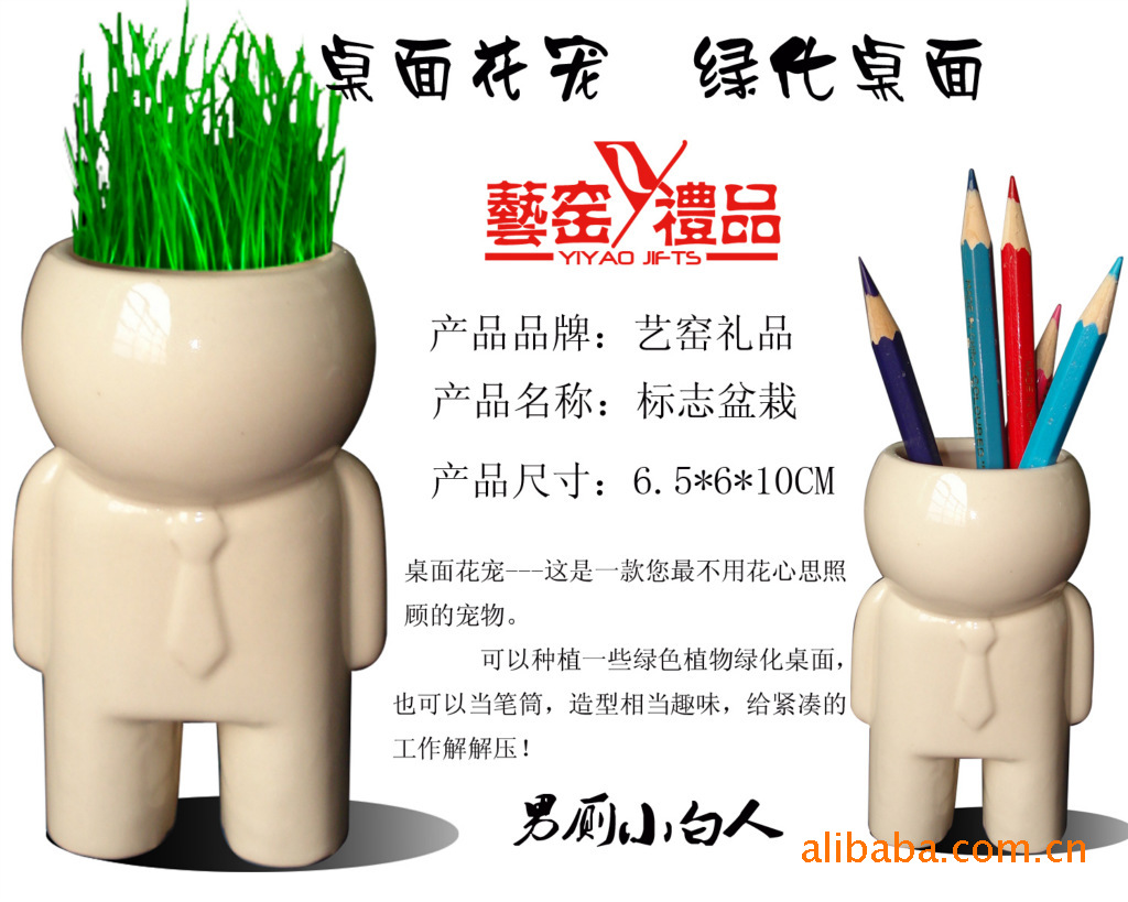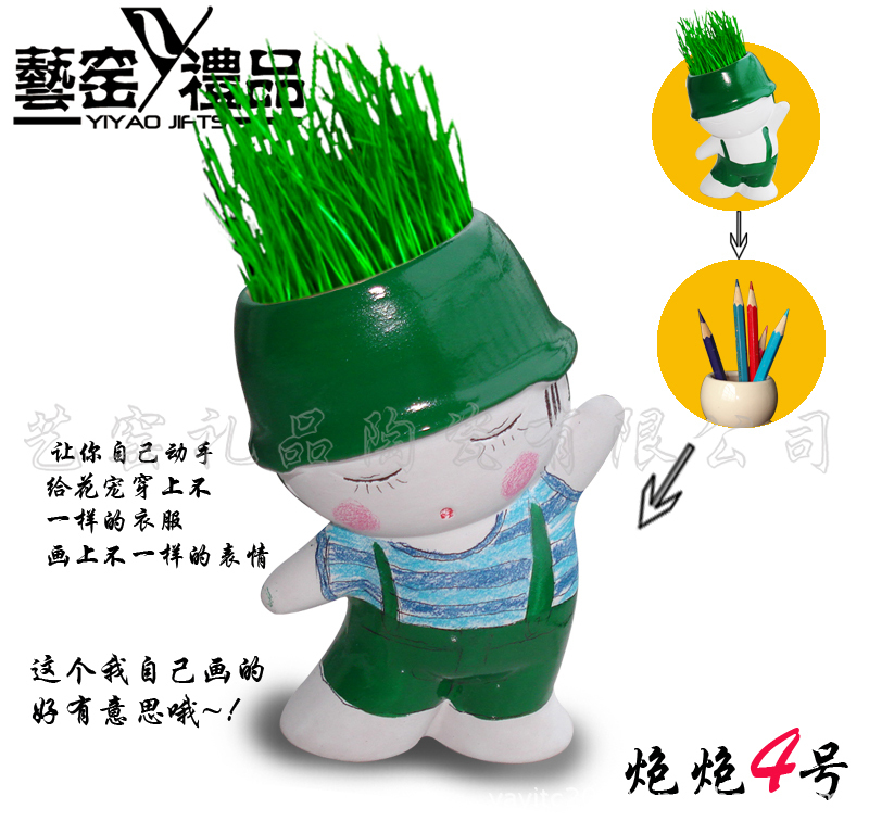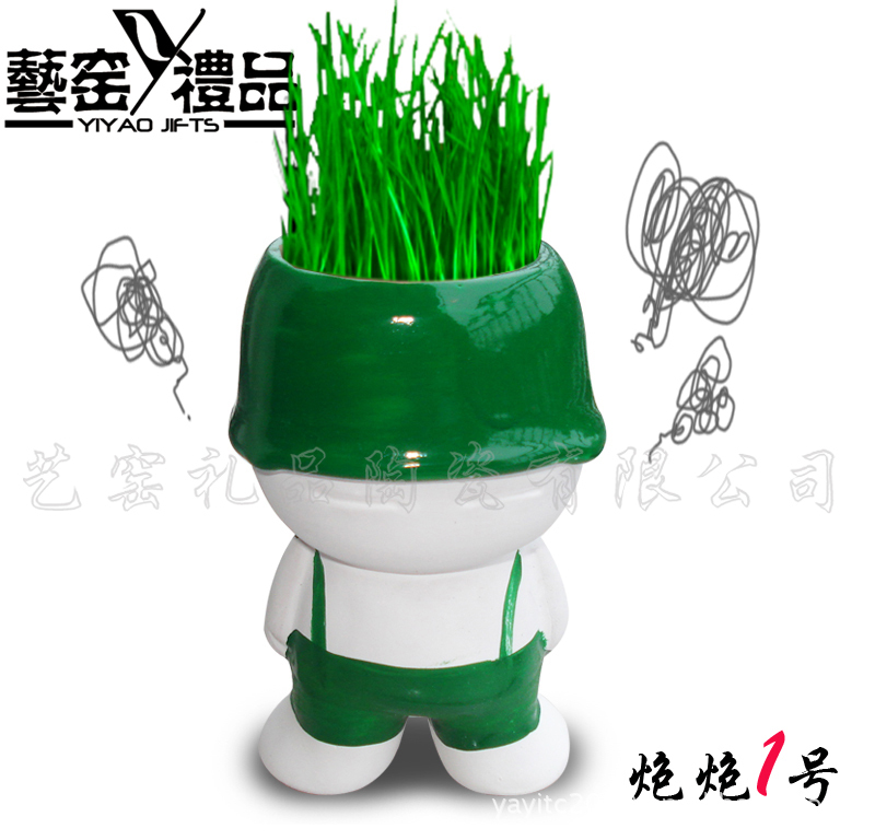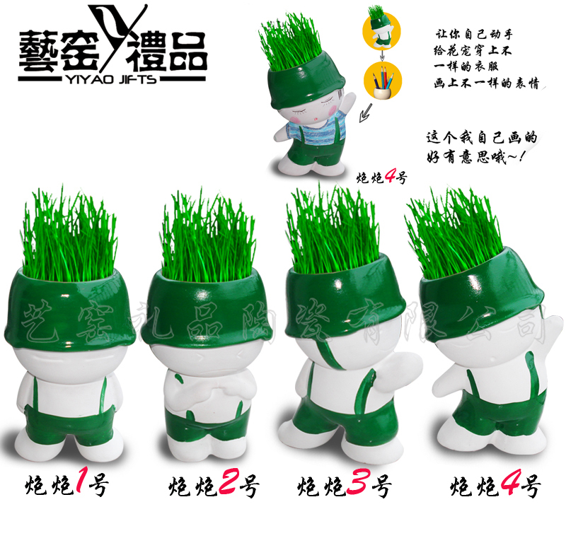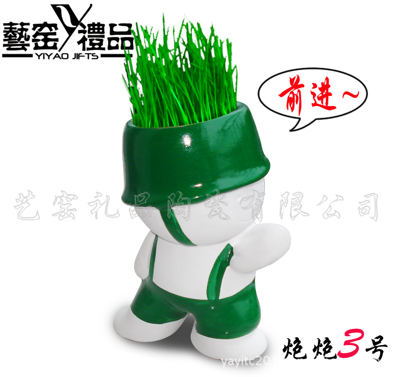 德化陶瓷工藝 創意新奇產品 桌面擺設新款青草種植兵哥 小白人