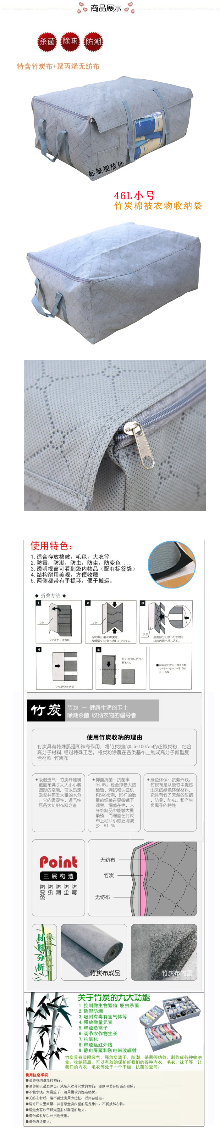 商品名稱:竹炭棉被衣物收納箱/儲物箱