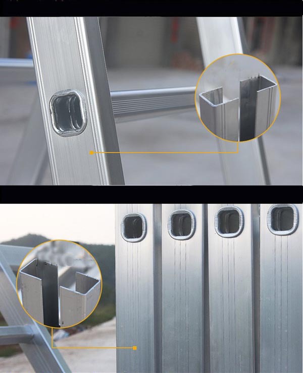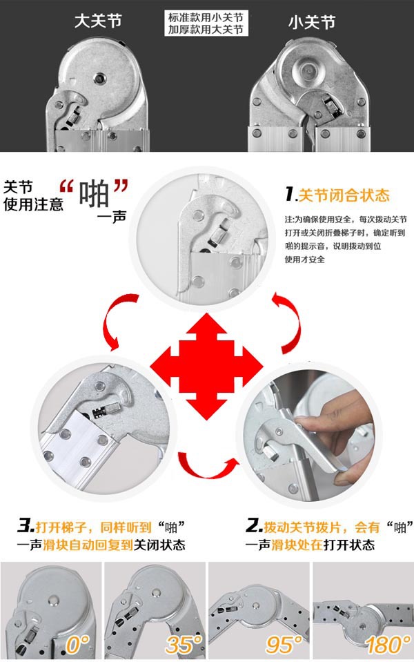 1. 確保所有鉚釘、螺栓螺母及活動部件連接緊密,梯柱與梯階牢固可靠,伸展卡簧、鉸鏈工作狀態良好。