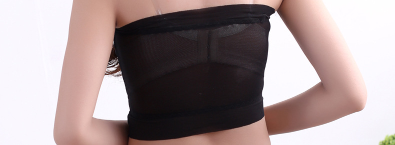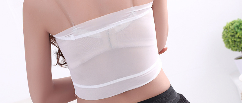 【品名】:裹胸/抹胸【款號】:1618【面料】:蕾絲網紗【成份】:95%錦綸 5%氨綸【尺碼】:均碼(適合75-88CM胸圍)【顏色】: 黑色 白色【特點】:蕾絲花邊、性感時尚、面料柔軟舒適、打底百搭【產品特點】:1:此款采用精美蕾絲網紗面料制作,柔軟舒適,彈力好,貼膚透氣;2:產品預留有隱形肩帶扣,方便使用肩帶穿著;3:胸部上方采用蕾絲花邊搭配,突顯層次感和性感之美,前面雙層網紗設計,美觀同時又可以起到防走光功能,是MM打底防走光必備品。