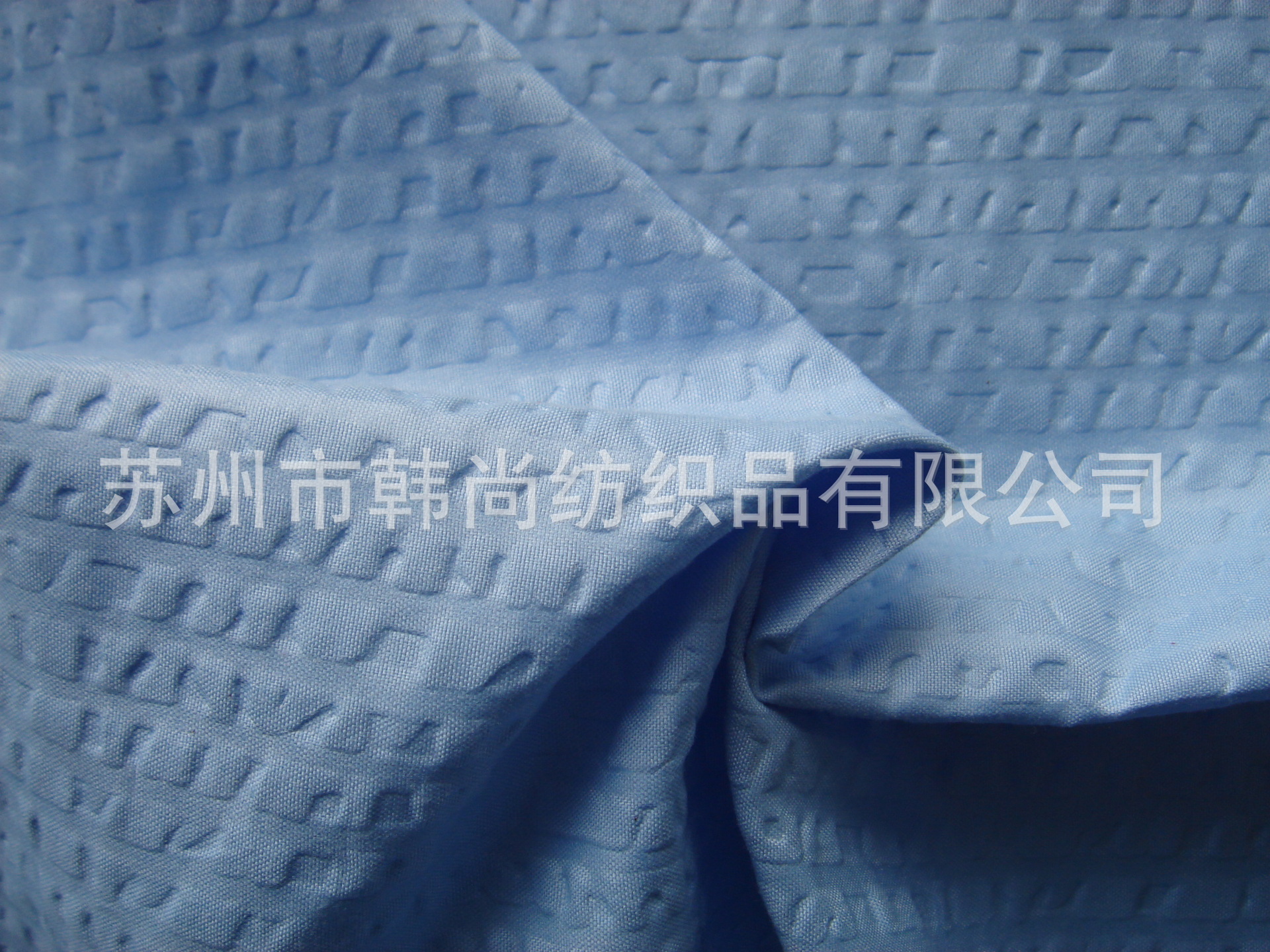 泡泡皺壓花磨毛布面料:采用75D和150D低彈絲交織而成,先經染整后,再經磨毛,壓泡后呈現很強的立體風格,為目前紡織業中的一朵奇葩。它以手感柔軟、舒適、懸垂感強、易于護理、絨面豐盈的新面貌吸引消費者,特別在用時很貼身,一種暖暖柔柔的舒服感覺,顏色歷久如新,由于工藝獨特,磨毛/磨絨產品不會褪色、起球等,獨特而時尚,賦予您個性的體現。是居家必備之佳品!同時該產品也廣泛運用于各大賓館的床上用品(床單、被套以及枕套)歡迎來公司參觀考察!謝謝!