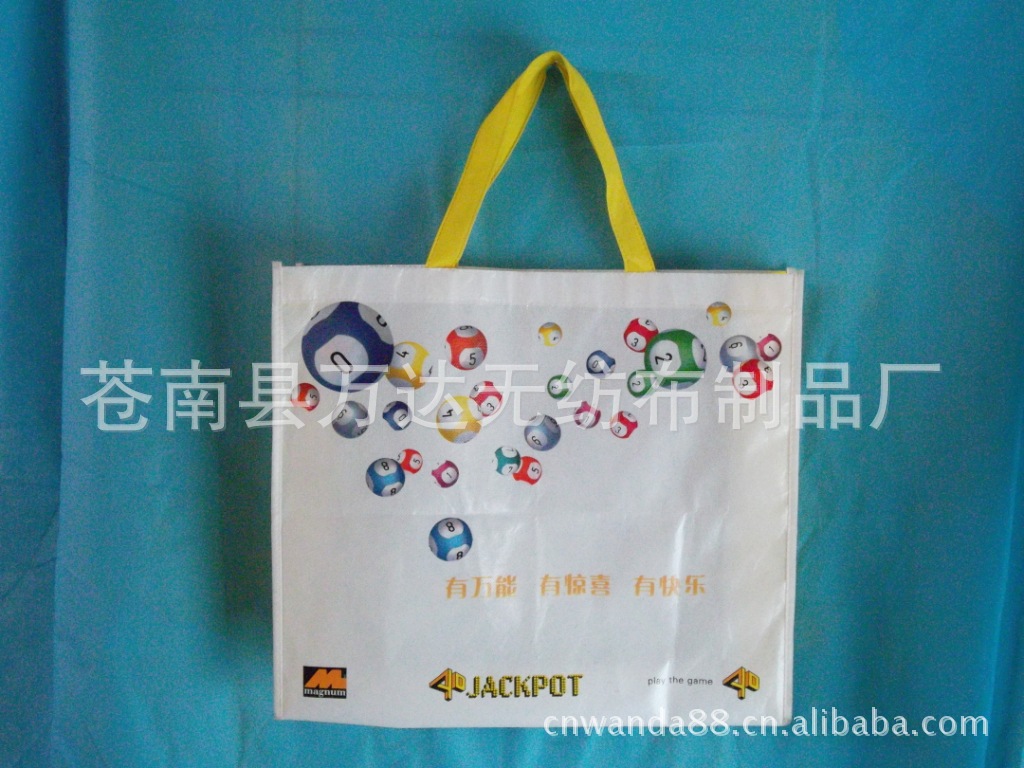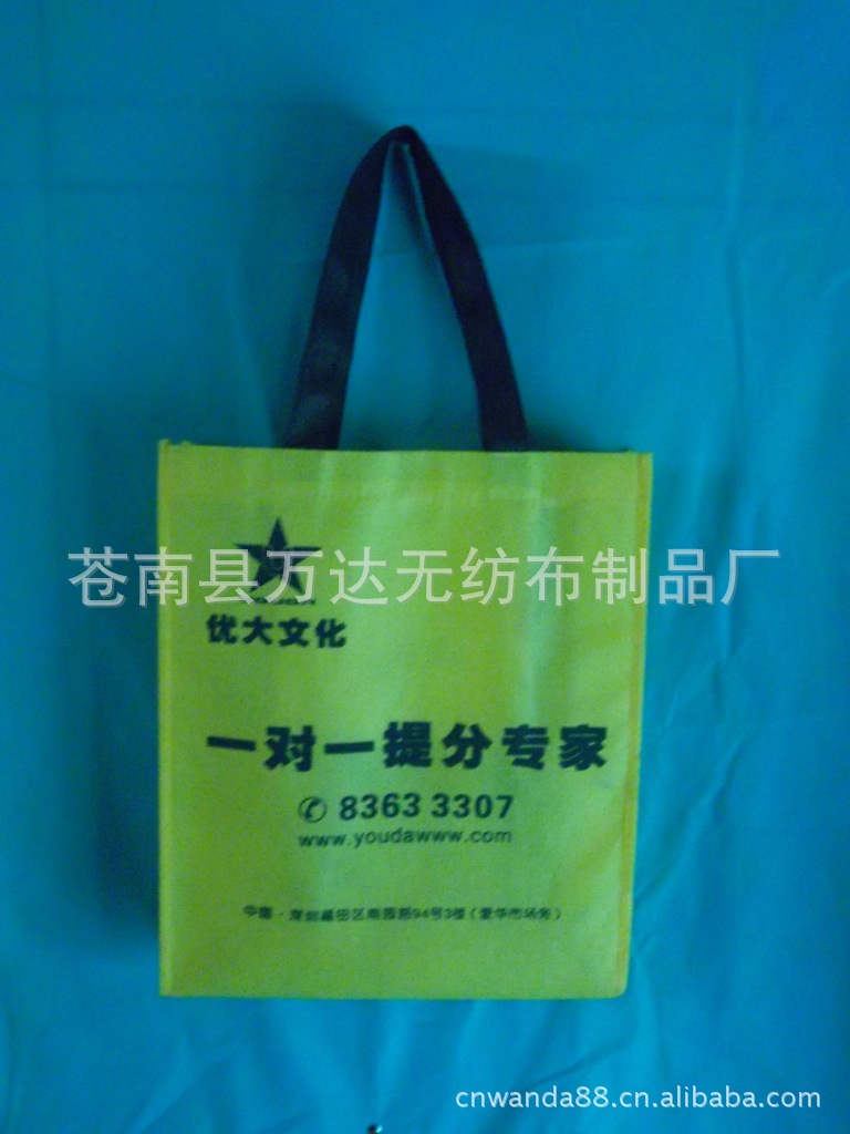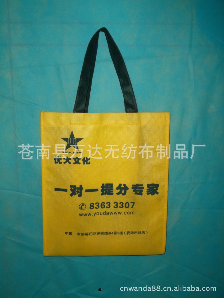 萬達無紡布制品廠專業設計制作各種:無紡布環保袋、無紡布腹膜袋、編織腹膜袋,廣告袋、禮品袋、棉布袋、帆布袋、麻布袋、PET麗新布袋、牛津布袋、滌綸袋、絨布袋、沙網袋、旅行袋、廣告圍裙、保溫袋、冰袋、紙袋、西裝套 各種高難度袋制品|。本廠生產的產品具有環保、透氣、柔韌、干爽、無毒、無味,無刺激性、色彩豐富等特點。無紡布袋.品種齊全.產品廣泛適用于各企事業單位.廣告宣傳、產品包裝、產品展銷等廠家直銷,價格優惠,交貨及時,并按照客戶的要求制做。因為材料、尺寸、印刷等不一致,價格視具體的商品來定,不以一口價為準。