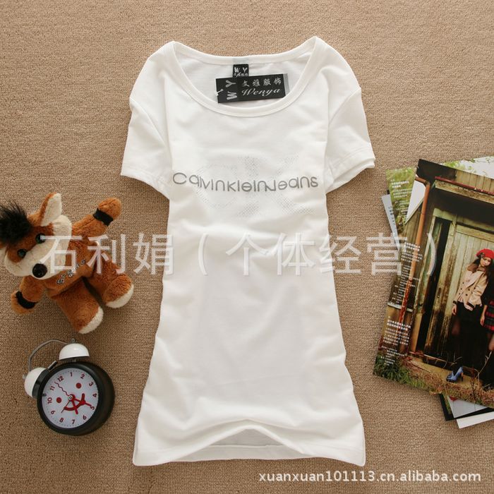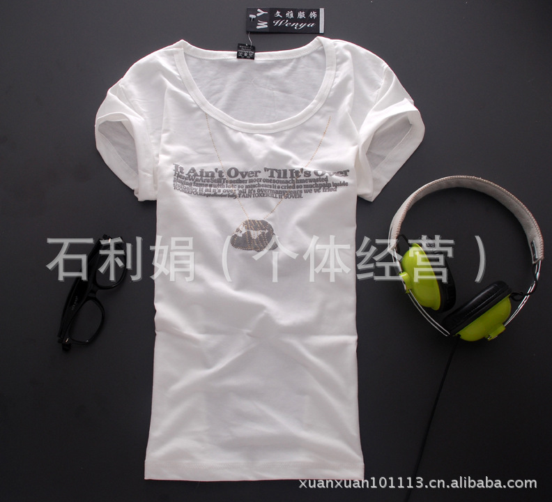 E系列瑞麗時尚女式T恤批發 女裝短袖T恤衫 純棉勾花手搖女T恤