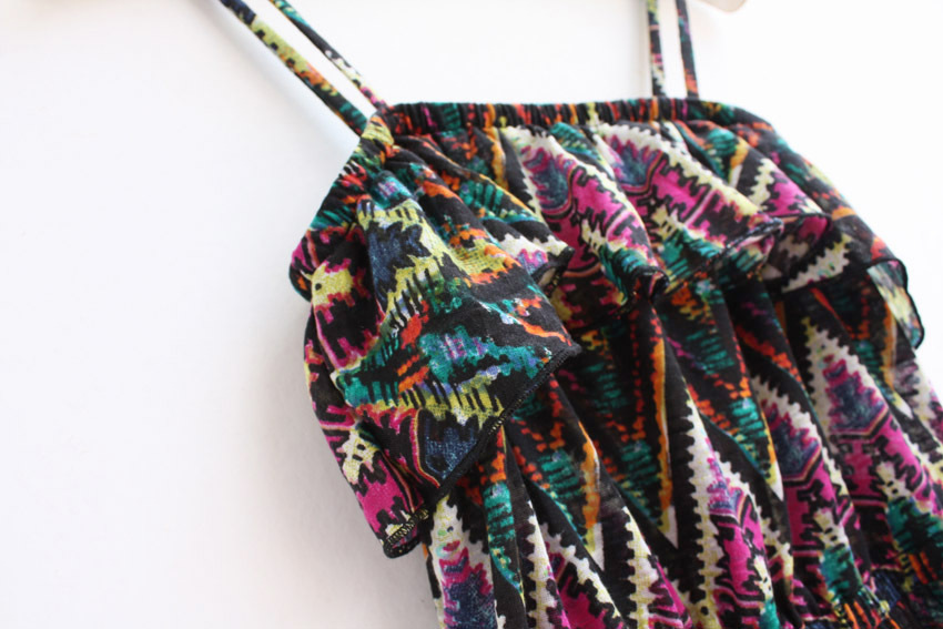 胸圍的地方是荷葉邊款式,會顯得更豐滿呢,胸下圍是松緊設計,豐滿一點的MM也可大膽選擇