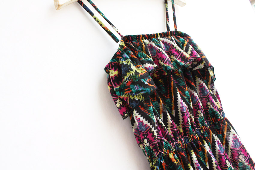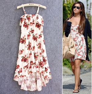 Q0013 田園復古風 波西米亞 前短后長 吊帶連衣裙 中長款 兩色