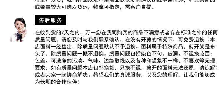 面料信息面料品名:水溶蕾絲面料貼花面料型號:E0333-7面料門幅:120CM面料材質:滌光絲面料特征厚度指數:薄 常規 厚 柔軟指數:硬 常規 柔軟 彈力指數:無彈 適中 彈力
