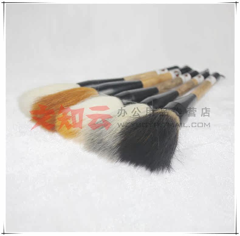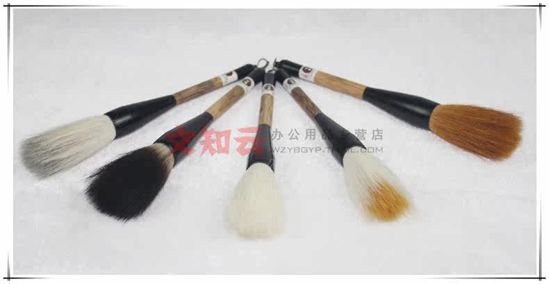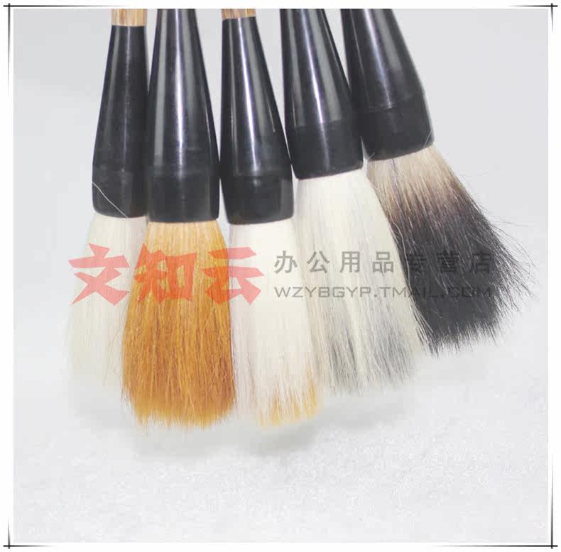 使用說明:說明:羊毫偏軟,狼毫偏硬,兼毫適中,這里就不重點講解了,主要講下石獾乃石獾箭毛、豬鬃精制而成。其石獾箭毛具有粗壯挺拔、剛強有力的優點,箭毛表面較粗糙,含墨量大,且吐墨均勻,能顯示多種效果,是畫家作松、梅、山水等畫的常用畫筆之一。彈性極強,能勾能劃,能皴能擦。但它力健有余,柔韌不足,不太適合表現大片水韻墨跡。書法方面則