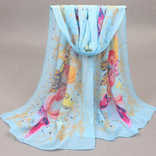 廠家批發新款仿真絲 雪紡長款淑女蝴蝶 女士時尚秋冬絲巾圍巾銷量5322