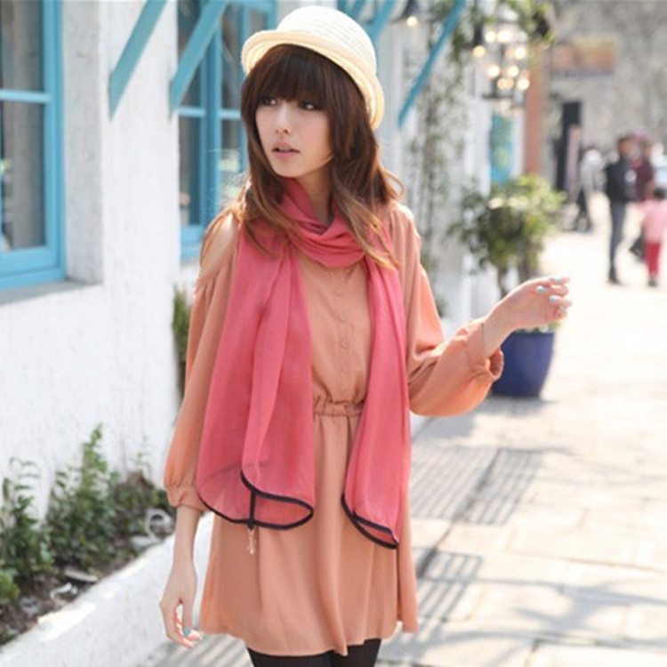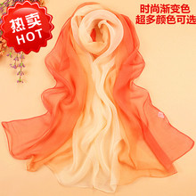 新款多色喬其雪紡圍巾 韓版漸變色長絲巾糖果色 女士時尚飄逸紗巾銷量7906