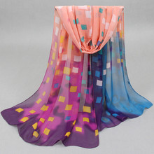 新款多色雪紡圍巾 韓版方格漸變色 長款絲巾女士時尚 飄逸圍巾銷量8039