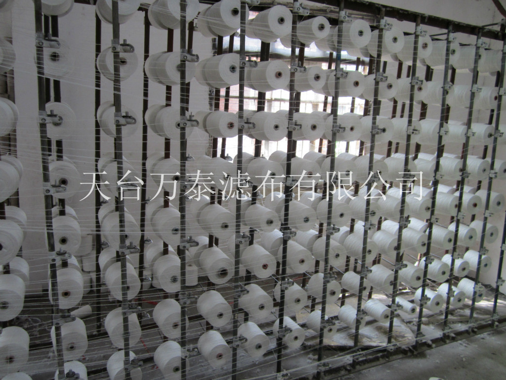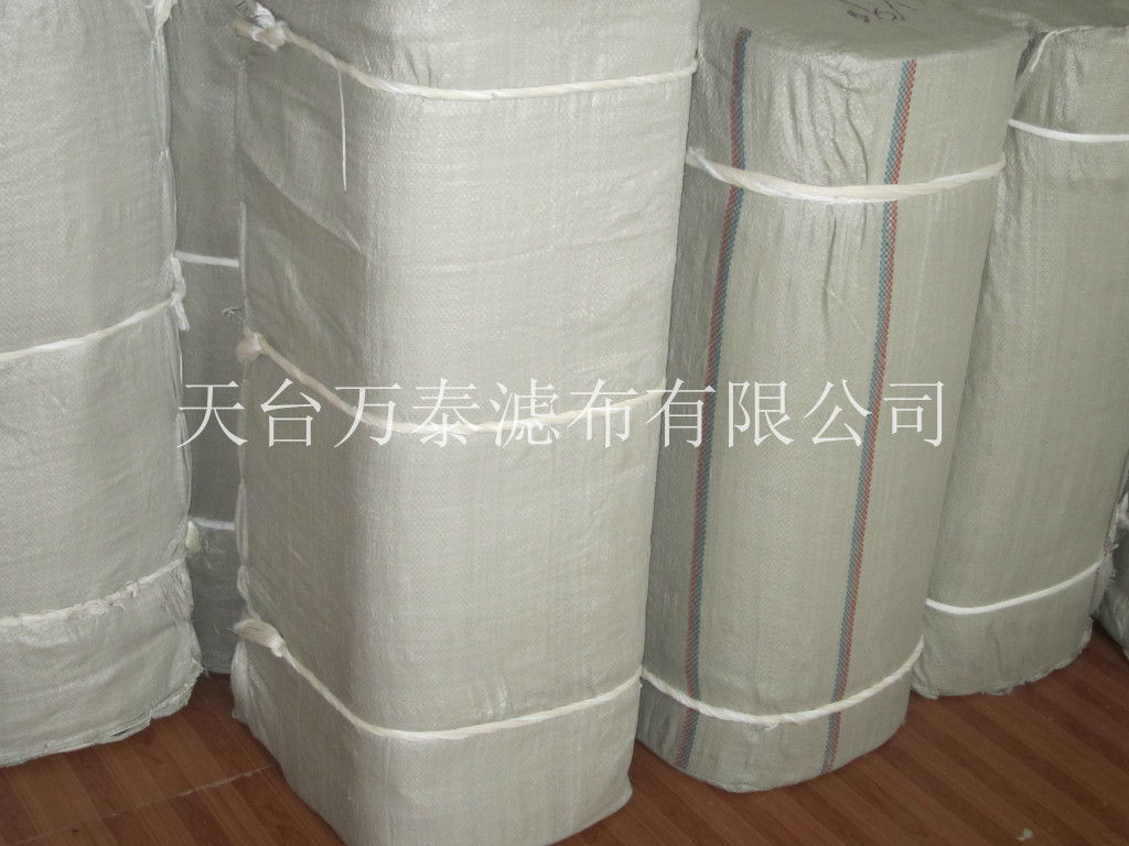 產品由采用4股滌綸短纖拼捻后,用經緯4 X 8織造而成,該產品的結構組織為斜紋,可以減少織物孔徑直接與過濾物的接觸,避免了平紋工業用布的那種殘渣堵住漏孔的現象。斜紋織造能增強布面的緊密度,能增強織物的經緯斷裂強度,該產品能再6-8公斤以上的壓力的板框壓濾機上使用。