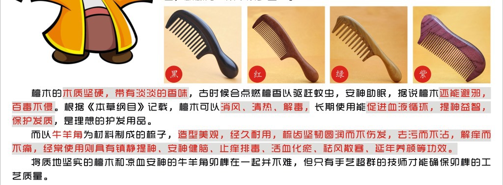 853【角木蛟】3-1A品牌廠家批發精品檀香木梳子 紫羅蘭木拼牛角梳超值特惠價:18.00立即購買