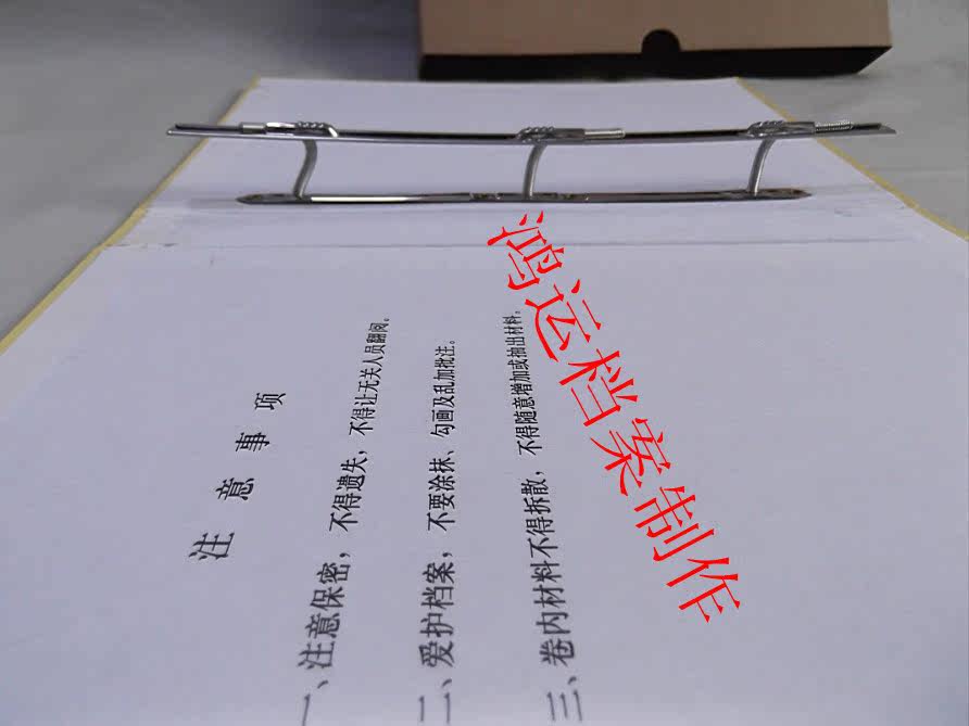 訂簧的孔距都是8.3厘米,。硬紙板職工檔案盒采用;進口紙外套、米黃色夾子 里面三孔不銹鋼裝訂簧。本公司有配套的專用打孔機,隔頁紙、不干膠分類角、不干膠脊背條、檔案目錄、散材料、干部履歷表,如和檔案盒一起采購,都有折扣 歡迎訂購