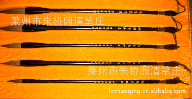 本廠主要生產:狼毫、羊毫、紫毫、兼毫、雞毫、灰鼠毫以及長峰、中峰、短峰、大楷、中楷、小楷,還有特制大提筆、鎮宅筆、高檔珍藏筆、禮品筆共有300多個品種900多個規格。主要用料筆頭以黑龍江省大興安嶺黃鼠狼尾毛、尾須、獾.針、兔影、貉.子毛、羊毛、羊須。筆桿用湖南湘妃、福建烤.紅等名竹以及虹木、紫譚、像牙、景太蘭等。
