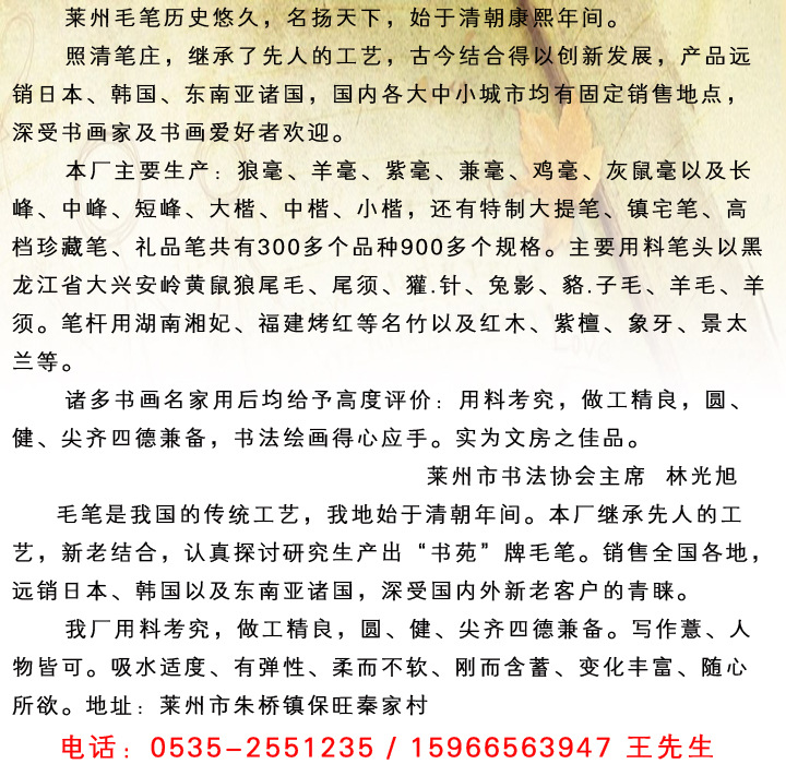 • 內貿毛筆類型