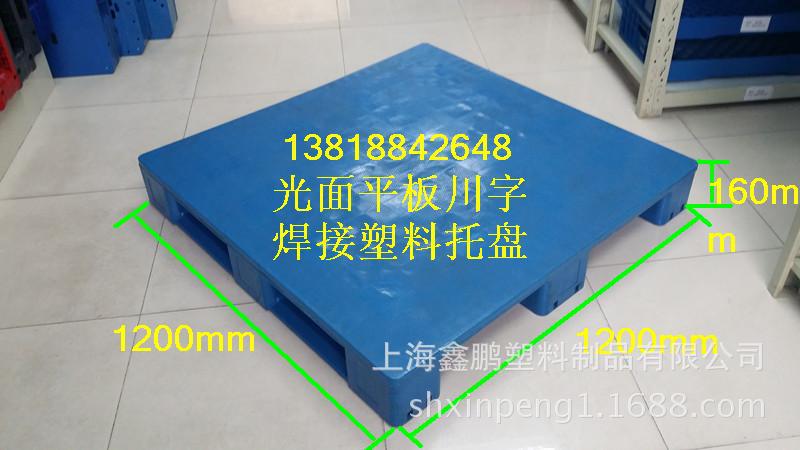 1212平板川字焊接塑料托盤,尺寸:1200*1200*160mm,材質:PP(抗沖擊聚丙烯),無毒、無味、耐酸堿(弱酸、弱堿)、耐低溫、易清洗、衛生、干凈、環保、可回收!自重:22.2kg±3%,顏色:藍色為主,其余顏色數量超過500片可以定做!此托盤屬于四面進叉型,可以配合手動液壓車和電動叉車使用;托盤面部可以加6根鋼管,底部可以加4根鋼管,加完鋼管后,承載會相應的增加,不同的承載可以加不同方案的鋼管!不加鋼管的時候承載分別為;動載1.2噸,靜載4噸;加完鋼管后承載分別為:動載2噸,靜載6噸,貨架1.2噸。托盤可以絲網印刷公司logo或者公司部門,以便于起到宣傳和分類管理的效果!
